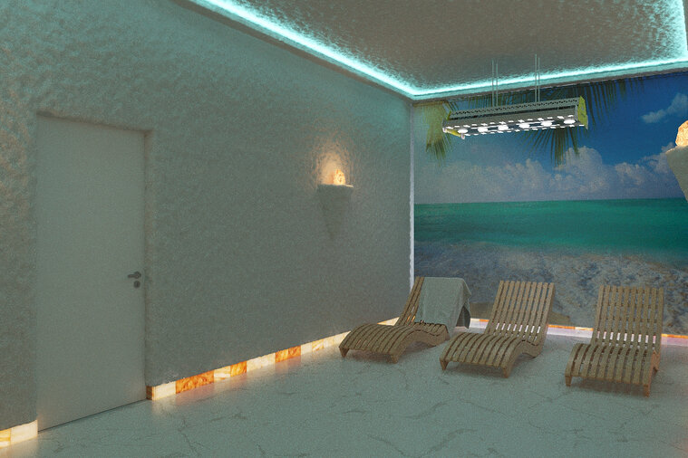 "Искусственное Солнце" создает не только ощущение солнечного света, но и эффект погружения в атмосферу морского побережья. А в сочетании с соляными комнатами и соляными кабинами ГалоЛюкс, это погружение и воздействие на организм наиболее полное и эффективное.